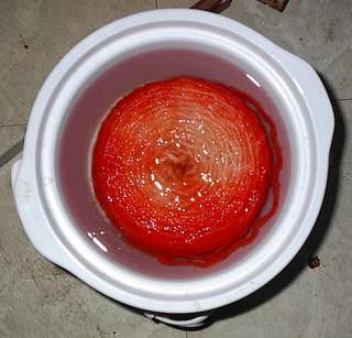 Historically lye is produced by running water through hardwood ashes, to get a very alkaline potassium solution. Lye is not a specific term, but a general term that can refer to sodium hydroxide or potassium hydroxide. What we’re aiming for is that the potassium carbonate (potash) that is in the ashes to react with the water we’re providing to give us potassium hydroxide. Modern lye is produced from pure sodium hydroxide crystals being hydrated in water, but the process to refine sodium hydroxide into pure crystal form wasn’t established until about 1790, which is solidly outside SCA period. If you are fortunate enough to live where you have marine (not lakes.. has to be salt water here) vegetation to burn for ash, you are likely to get enough sodium for your lye to be mostly sodium hydroxide, which made (and makes) nice firm bars of soap. Soap made using potassium hydroxide tends to never really get firmer than play-doh sort of solid. It washes fine, but it’s not a good solid bar of soap.